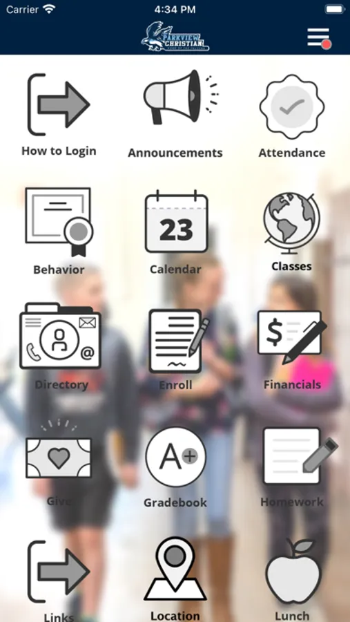 Welcome to Parkview Christian Academy's Family App! This app is a one-stop-shop for our school community, with anytime/anywhere access to all the tools, content, and communication parents need to stay connected and engaged. School information available in one easy-to-access place. Includes Announcements, School Calendar, Student Grades and Homework, Family Accounting, Giving Options, and much more!