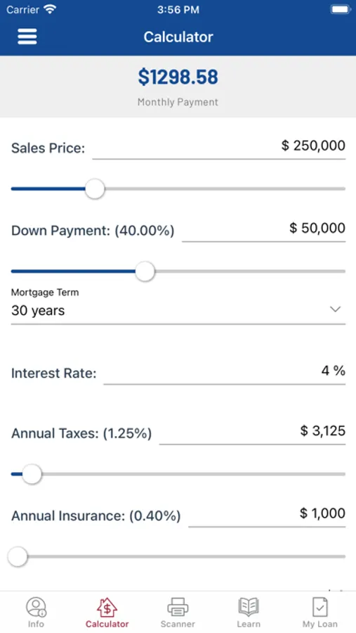 •Easy-to-use calculators will help you determine a monthly mortgage payment and explore different loan options.