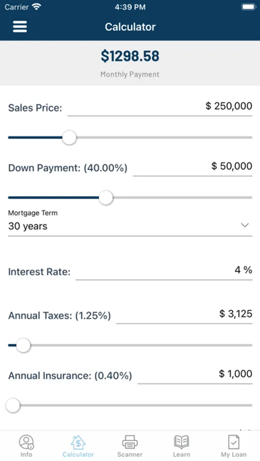 •Easy-to-use calculators will help you determine a monthly mortgage payment and explore different loan options.