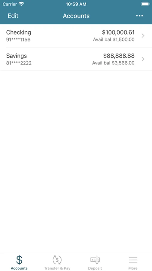 View account balances, recent transactions, transfer funds, and deposit checks with mobile deposit.