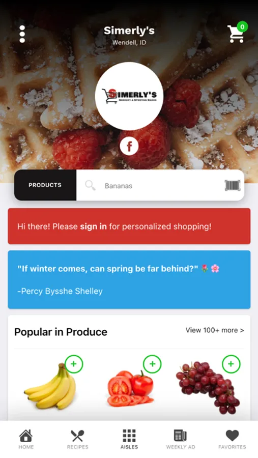 Order your groceries from Simerly's Market on the go on your mobile device or from your iPad on your couch. Our award-winning grocery app makes grocery shopping a breeze with quick access to our weekly circular, an easy-to-use product search, detailed product details and labeling, tasty recipes, and family meal planning tools. What could be better than that?
