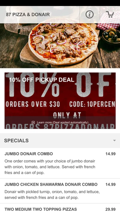 The best Pizzas & Donairs in Edmonton are at 87 Pizza & Donair, Welcome! In addition to our yummy Pizza, Donairs, and giant, juicy Burgers, we also make our own Shawarma platters. No matter what meal you choose, it'll be served hot and made with fresh ingredients - even our sauces are homemade. On the lighter side, we have fresh salads, refreshing smoothies and much more.We first opened in West Edmonton in 2017, and have loved serving this community from the first minute. Come see us! We've got the perfect food to suit your hunger and look forward to seeing you come back to enjoy it.“You'll love our personalized treatment and will want to keep coming back for our delicious food. Our repeat customers quickly become like family… and that's how we'll treat you!”Our delicious food, customer service, combined with our pricing, is unmatched. Please feel free to browse our site - we're sure that you'll find what you are looking for. Call us at (780) 487-8333, order online, download the 87 Pizza app or visit us at 18914 87 Avenue, and we'll prepare a delicious meal for you.
