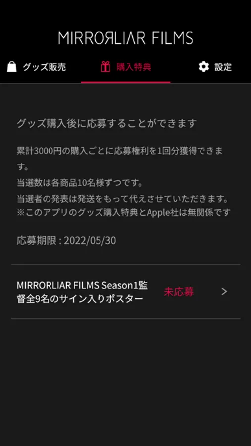 3.MIRRORLIAR FILMS関連グッズを購入できる