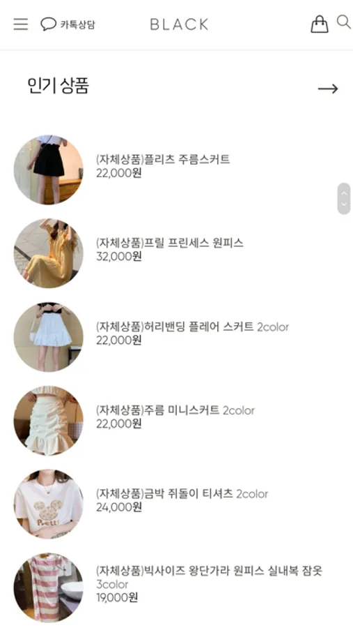 신상 의류제품을 블랙에서 만나보세요