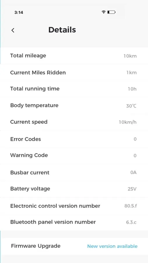 3. In the "details" screen, users can view the current information of the vehicle, including mileage, time and firmware version, and check whether the current vehicle firmware needs to be upgraded.