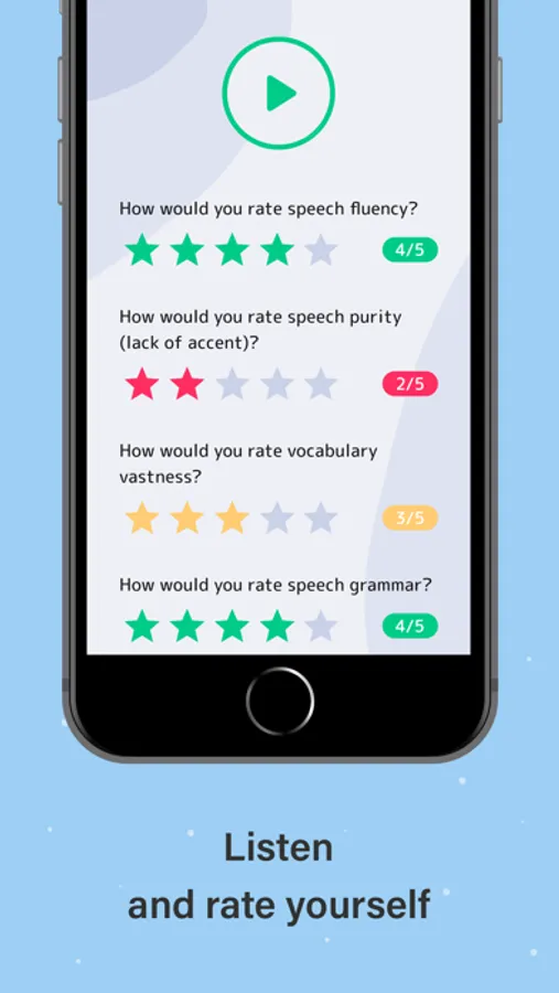 - With every week of app usage you will improve speaking skills and even laugh while listening to your previous speeches.