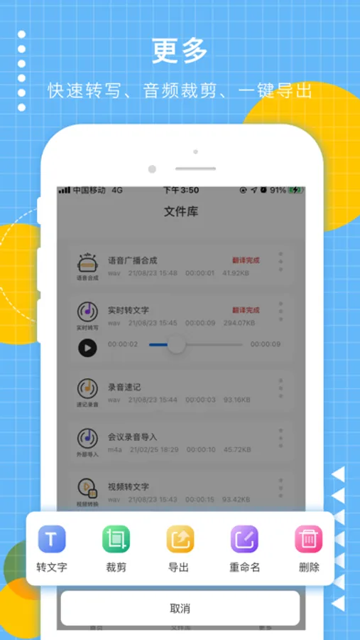 语音转文字:各类音频转文字准确率可达98%;