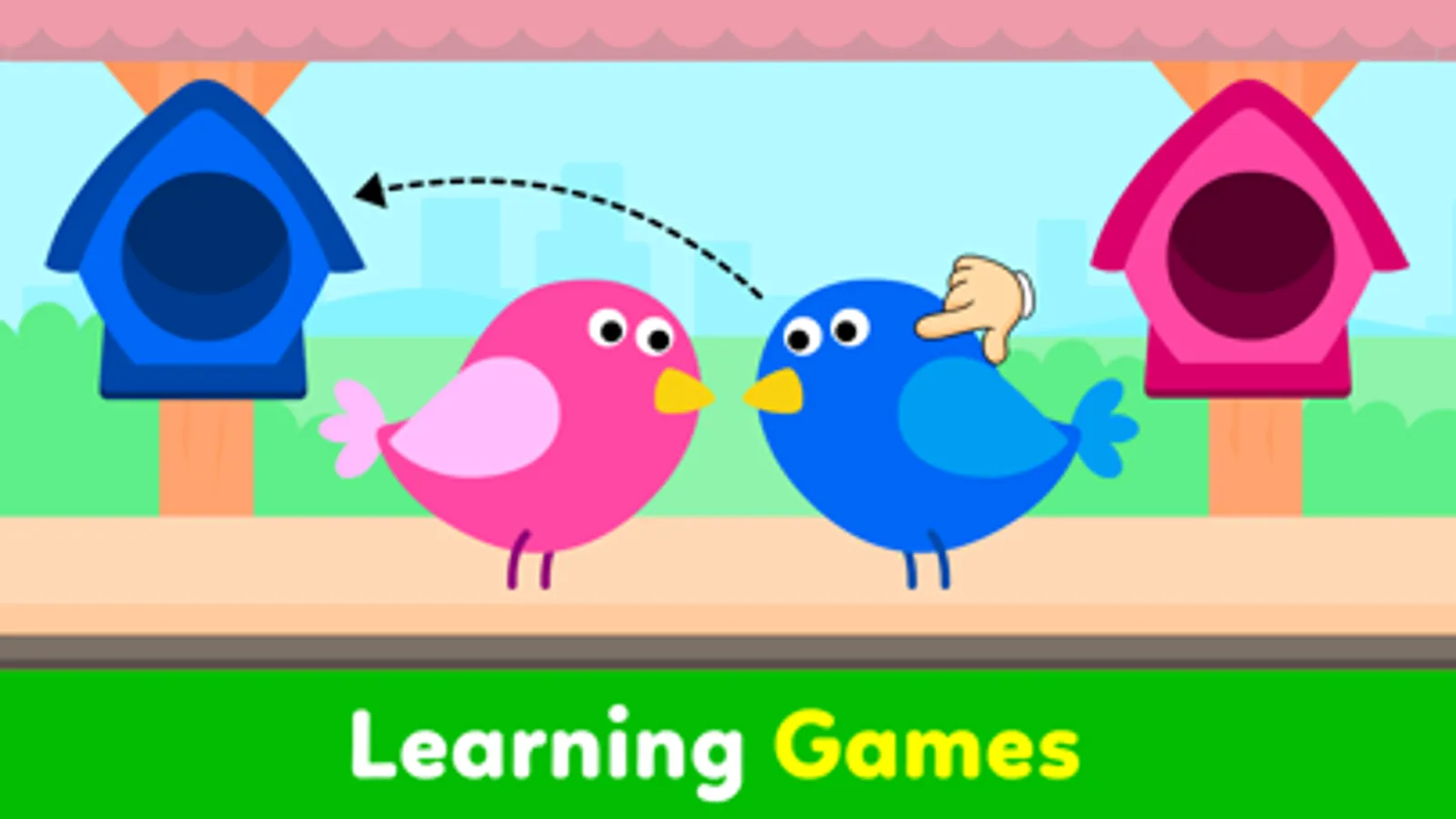 There are many mini learning games for toddlers like coloring games, sort by color, constructing a bridge, car decoration, etc