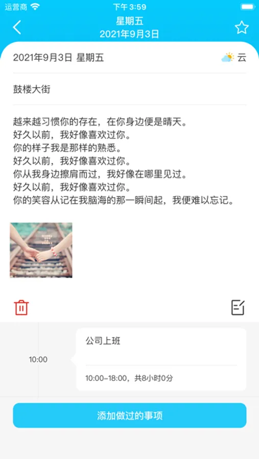 人的一生就像一本日记书,每一个年龄又像一个小小的日记本,而日记本中的每一页又像现在的每一天。多年以后,翻开自己的这本日记书,我希望可以看到满满的每一页,而这每一页又都是满满的回忆。如果看到每一页都是空空的,那我的回忆是不是也是空空的。