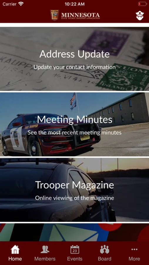 The app is intended as a communications tool for the Minnesota State Patrol Troopers Association, its members and the residents of the state of Minnesota. To that end, the app includes: