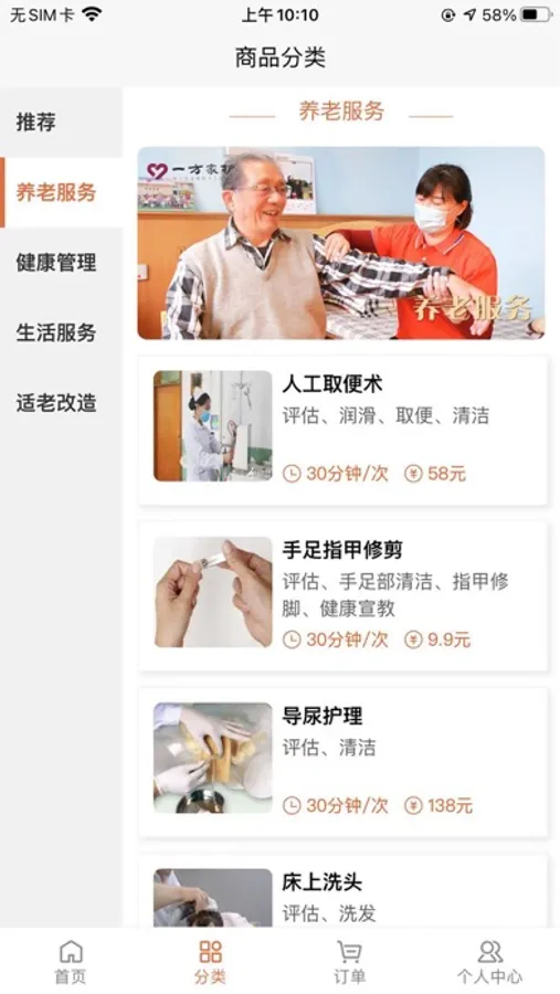 服务内容包括养老护理、生活服务两大类,共30余项服务项目。