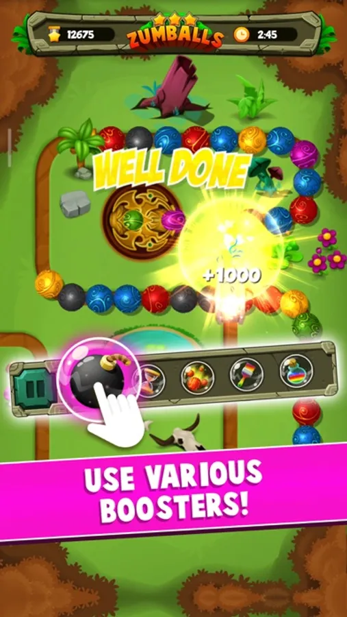 - Collect 3 colored balls of the same color to blow them up to remove them from the field