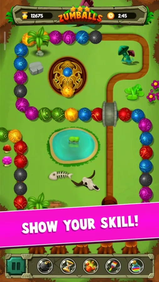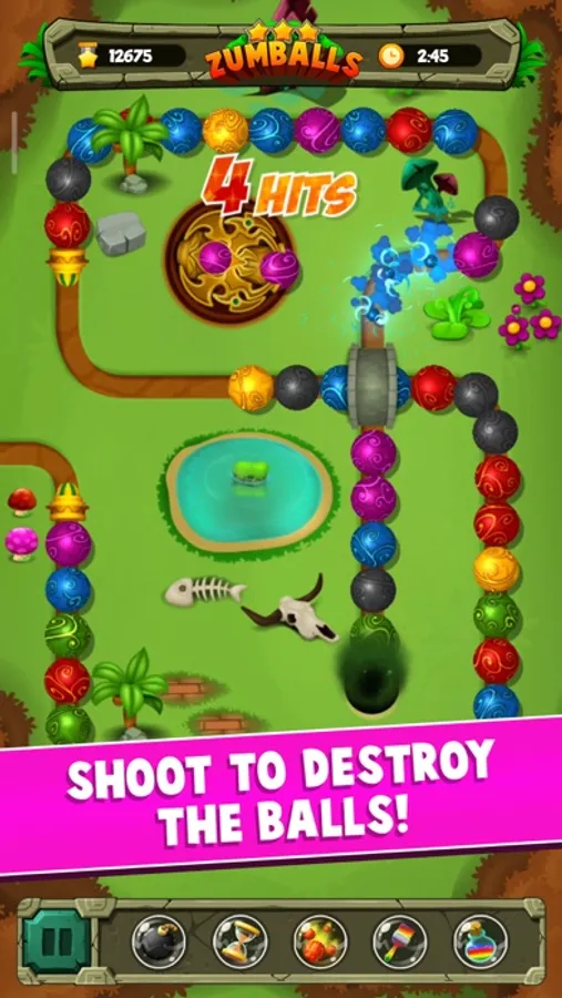 The game Zumballs is puzzle game using shooting colored balls, collect a group of 3 balls, so you destroy them.