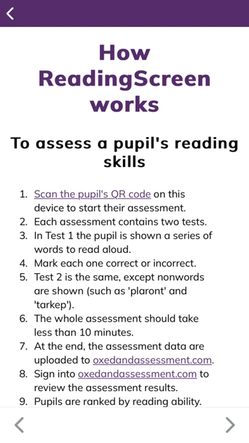 To launch an assessment, the adult conducting the assessment should scan the QR code for the pupil they want to assess. No personally identifiable information is stored on the device.