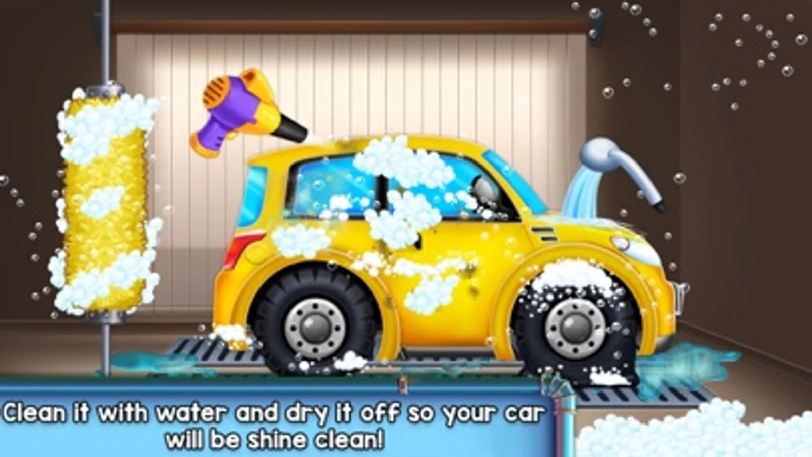 Let’s make this dusty and dirty car get its shiny look back in car washing games free for kids! First, grab the soap and sponge to clean up all mud and spots.