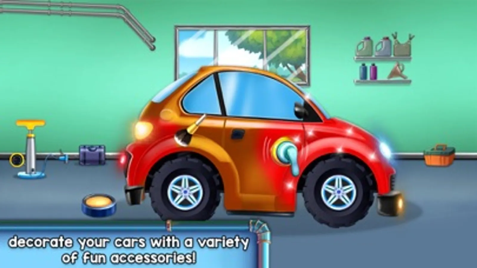 Visit the Gas Station! Fix all scratches in the body with the paintbrush, pump the tires full of air, and make the engine purr with oil!