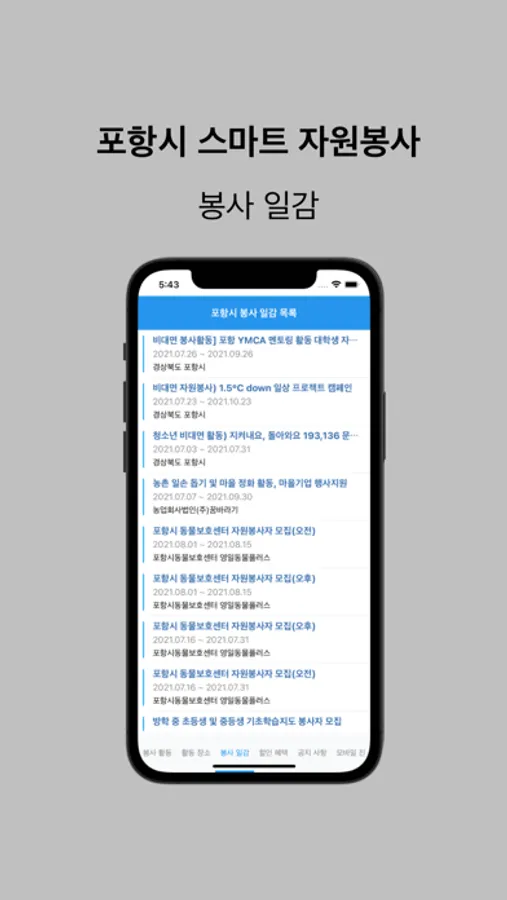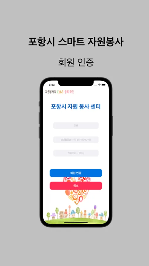 자원봉사활동시 스마트폰을 이용하여 봉사활동 시작과 종료시간을 기록관리하는 것입니다.