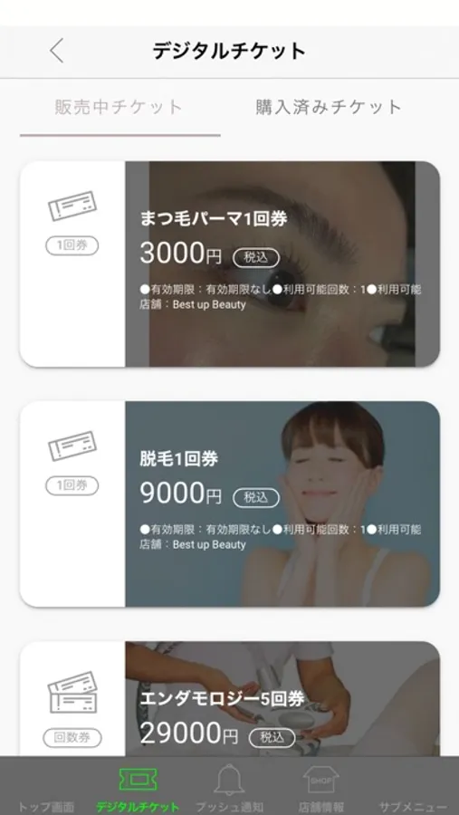 オンライン決済可能なアプリ会員様限定のデジタルチケットを