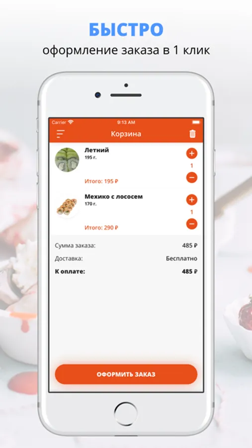 Скачивайте наше приложение, оформляйте заказ и наслаждайтесь любимой едой, где бы Вы ни были! Приятного аппетита!