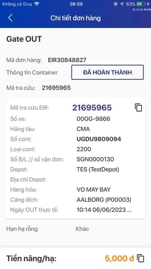 + Đăng ký đơn hàng hạ rỗng, trả rỗng.