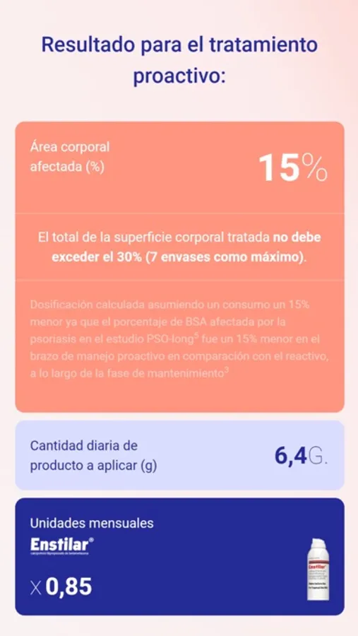 CalculaDosis Enstilar® es una app dirigida exclusivamente a profesionales sanitarios. Si no eres profesional sanitario, consulta a tu médico antes de tomar decisiones sobre el tratamiento de la psoriasis.