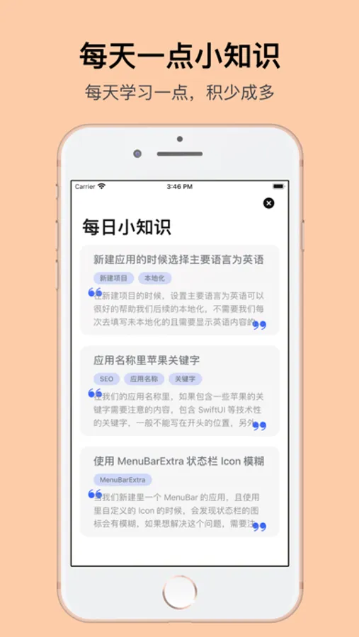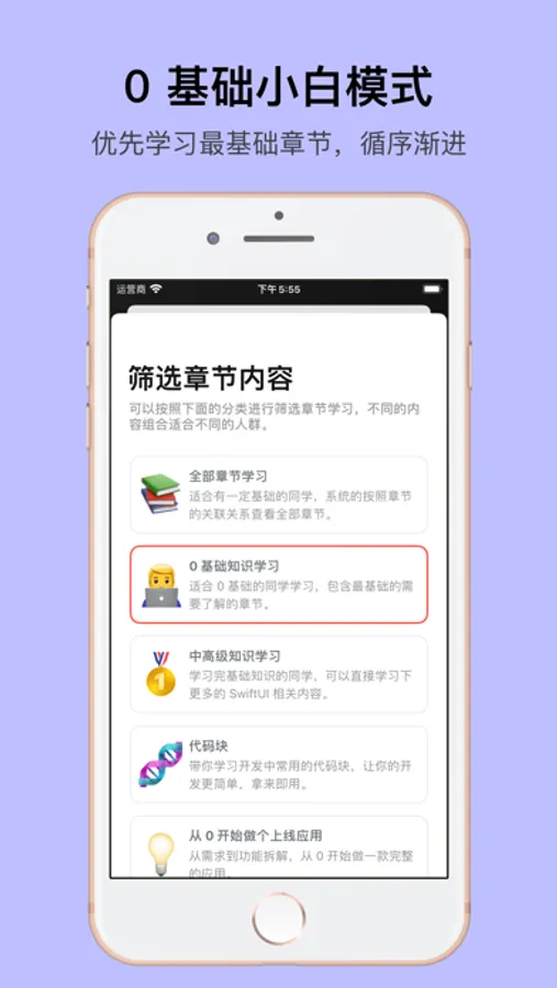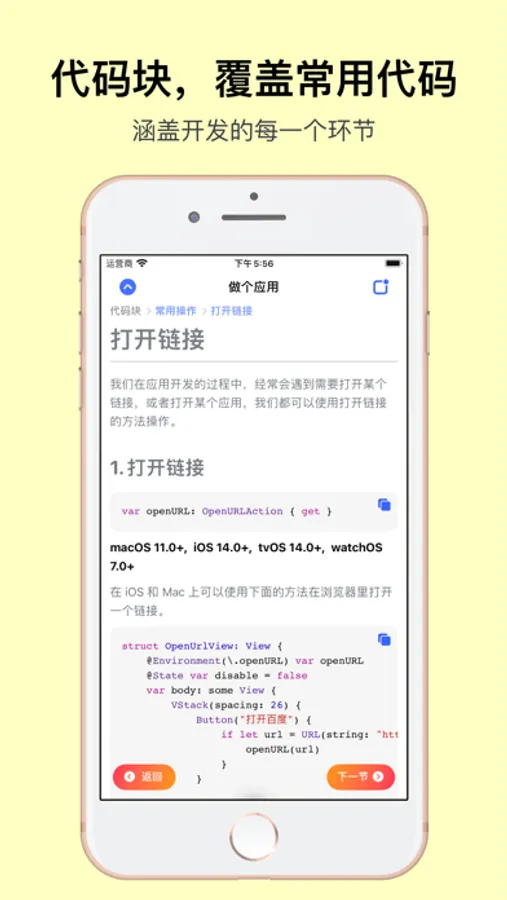 「做个应用」是一款教你从 0 开始学习 Apple 全平台开发语言的应用,共计 30+ 模块,200+ 个章节,从基础数据结构知识,到设计模式,到各个类似的组件的使用,包含了开发 Apple 应用的每一个环节,跟着整体的课程轻松学会 SwiftUI,每个人都可以开发 Apple 应用。
