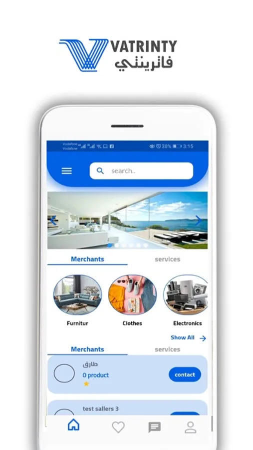 فاترينتي افضل تطبيق في مصر يوفر منصة تجمع بين التجار ومقدمين الخدمات والعملاء المستفيدين من الخدمات والمنتجات يسمح التطبيق للتجار باضافة متاجرهم وعرض منتجاتهم وخدماتهم في تصنيفاتها ويمكن العميل من البحث عن الخدمات والتجار والمنتجات في منطقته والمناطق الاخرى وتقيم المنتجات والتجار كما يمكنه التواصل مع التجار والاستفادة من الخدمات والمنتجات