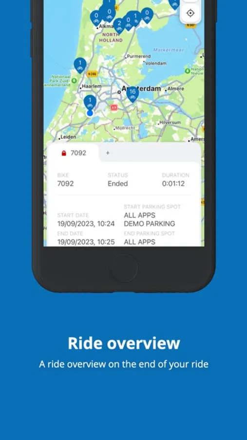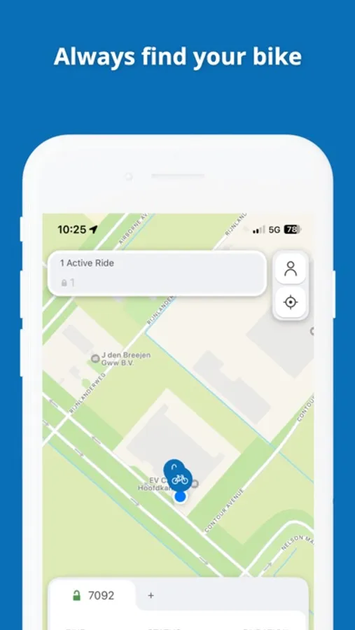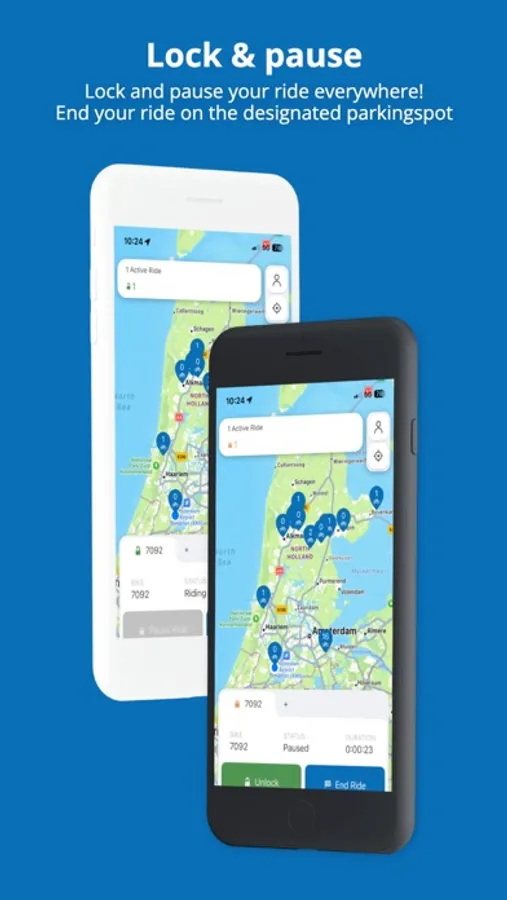 With this app you can grab a bike at any time. Create an account and unlock a bike!
