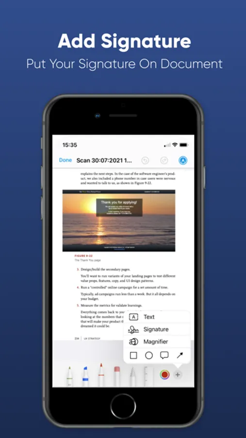 Signature is a big headache especially in document transactions made over the internet. But not anymore because with Smart Scan you can save your signature and place it on the photos you take, or you can prepare and draw a signature yourself if you want. In summary, you can perform all document transactions and signatures of these documents quickly and practically.