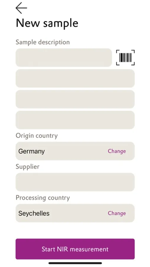 - Measure NIR spectra of feed or raw material samples using connected device