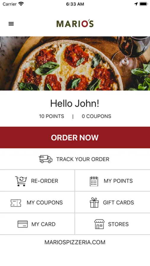 The official mobile app for Mario's Pizzeria of New York is now here, bringing you the ability to order from all Mario's Pizzeria of New York locations. Ordering from Mario's Pizzeria of New York is as easy as eating a Pizza! With this app you can track your loyalty points, view your coupons, pay with your gift card and order your favorite food online.