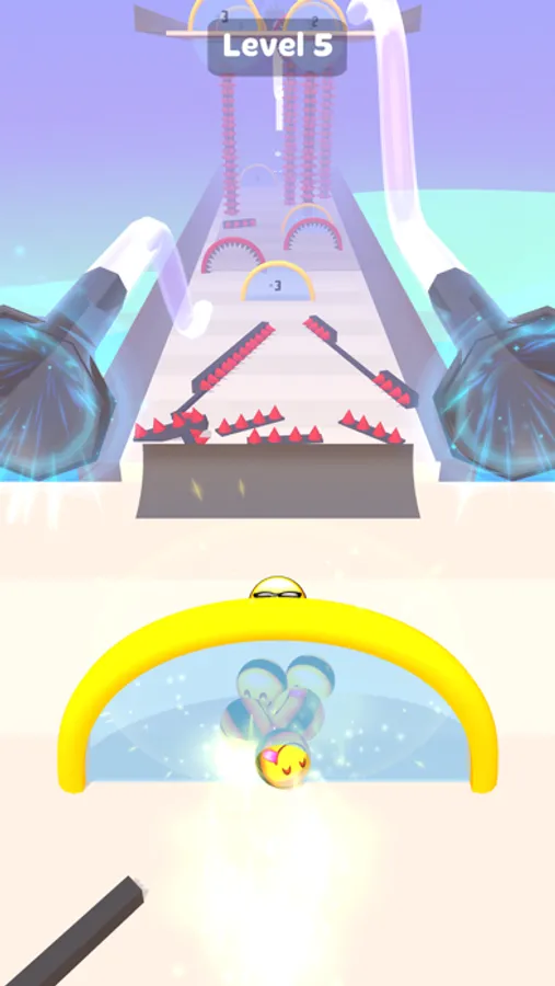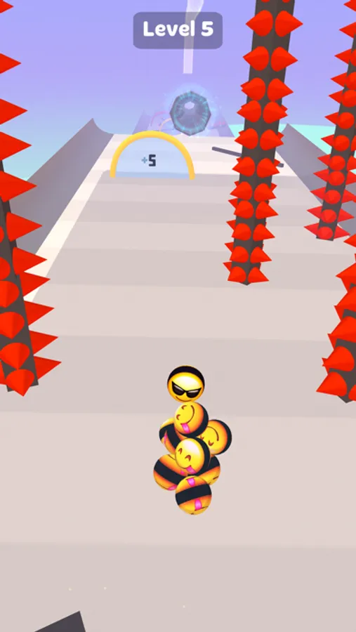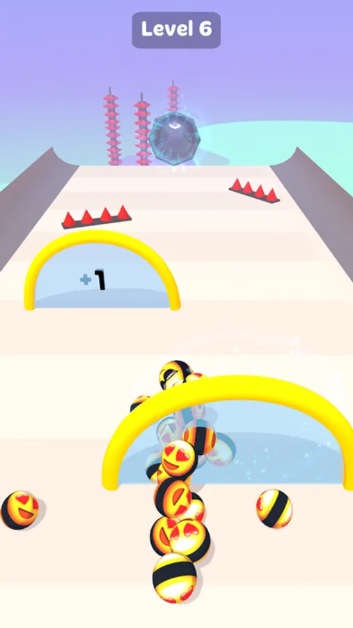 - Avoid the obstacles, enter the multiplier doors to increase the number of your emoji balls.