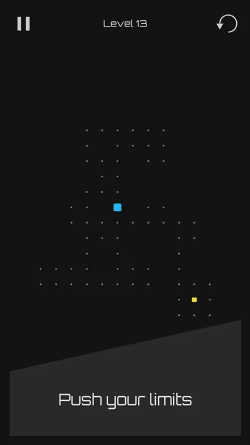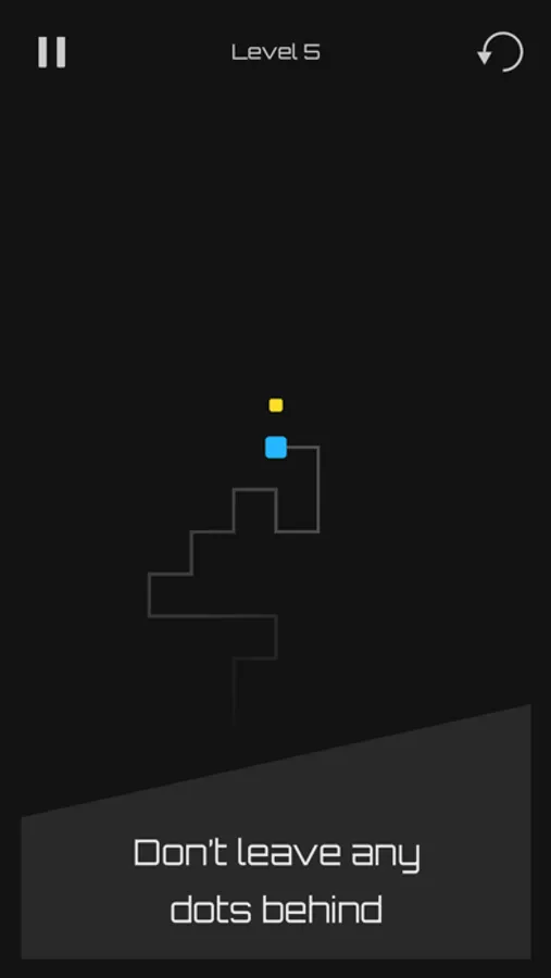 The goal is to move the blue square to the yellow square without leaving a single dot behind.