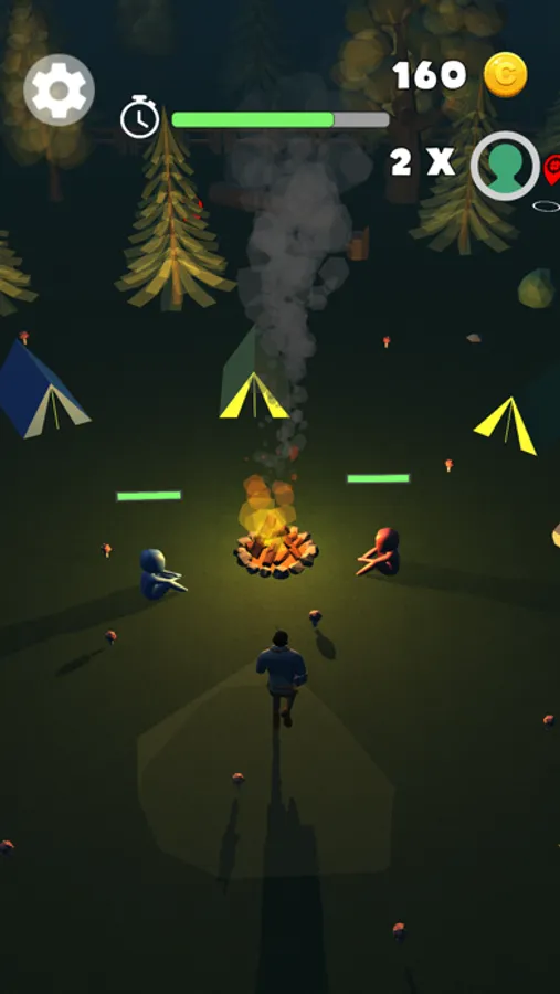 While the killer walks in the shadows, no one sees him. When the victims see the murderer, they run away to the forest or hide in tents for defense. Stickmen move a little faster than the slasher, so you need to catch the moment to kill them.