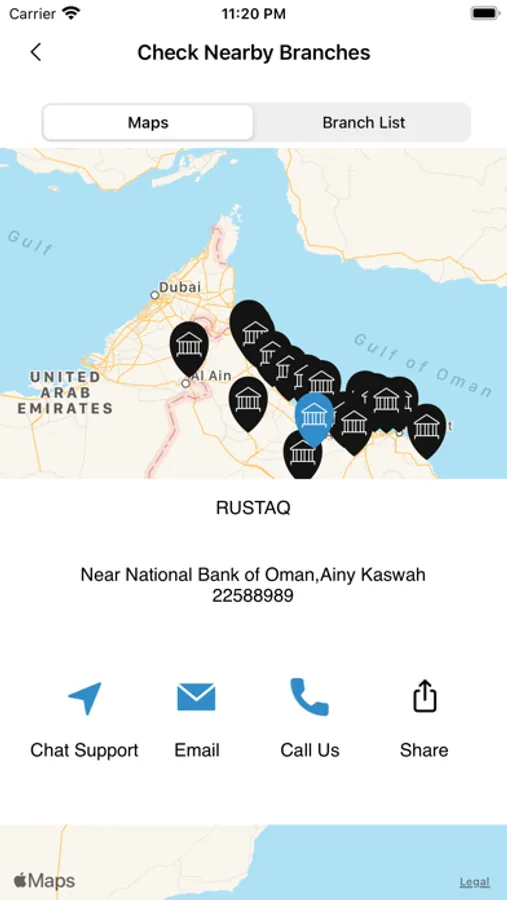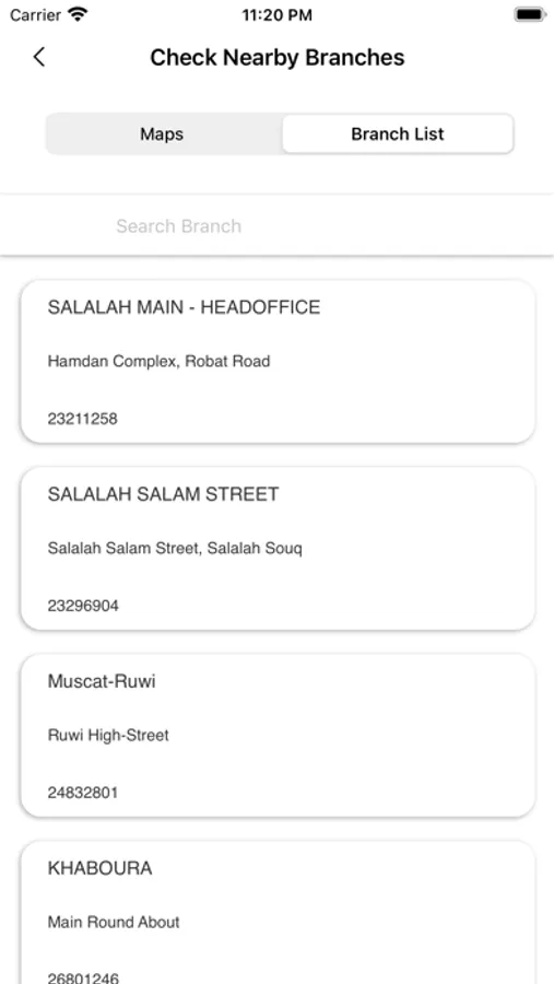 Available with maps to locate branches as well current locations.