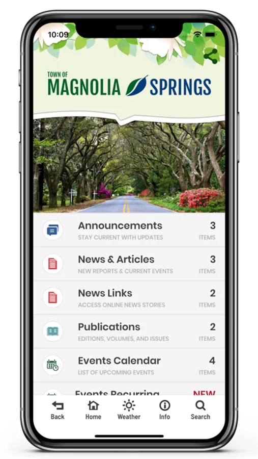 Magnolia Springs is pleased to announce our new app for your mobile device! Our app offers a convenient way for individuals to learn about upcoming events, important meetings, report a concern and so much more. This free app is a great way for both residents and visitors to stay connected with everything in Magnolia Springs!