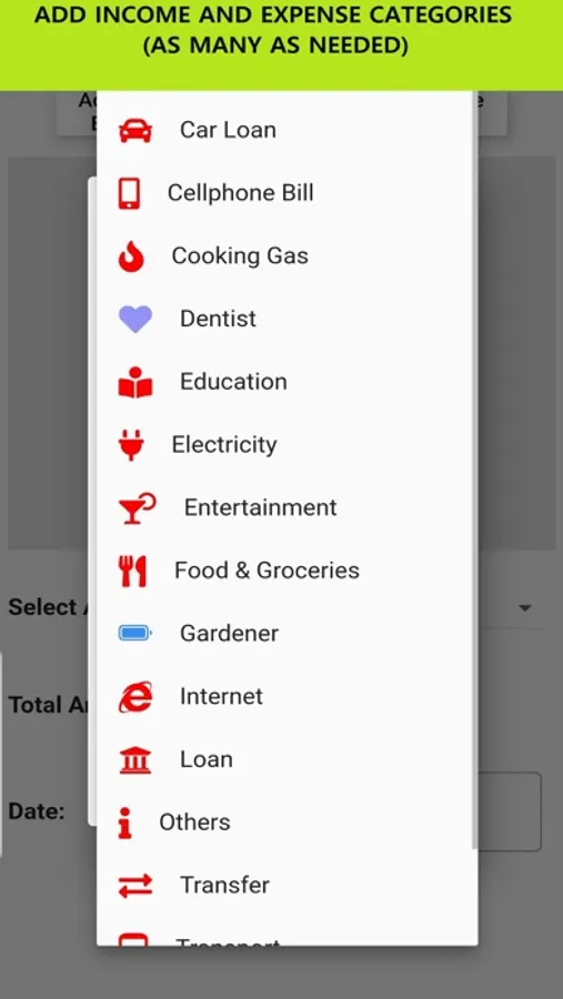 Our app uses double entry bookkeeping or accounting. This means that for every entry, an opposite entry will go to your sources of funds such as Cash, e-wallet, Savings and Checking accounts, Credit Cards etc