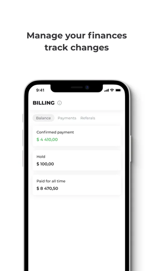 - Finance section, for withdrawing funds and monitoring the balance on the balance sheet