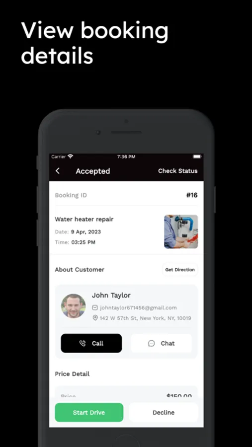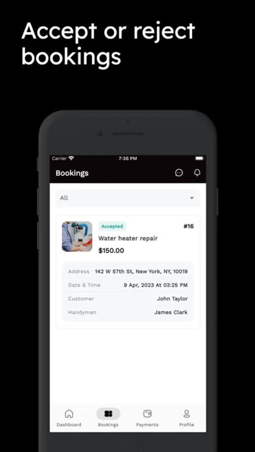 - Receive notifications of new orders of your services in real time.