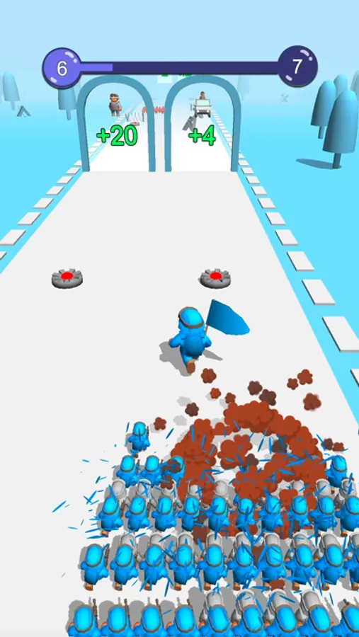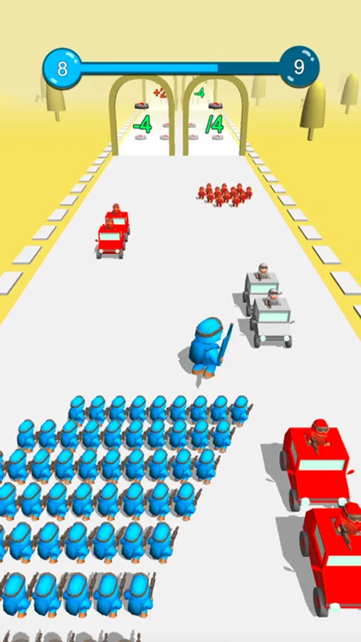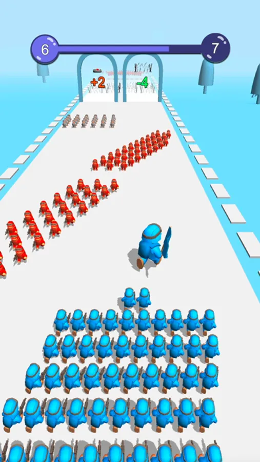 Swipe to move your army and recrut more soldiers! Beware of obstacles along the way like mines or barbed wire. Grow your army to beat the enemy troups at the end of each level.