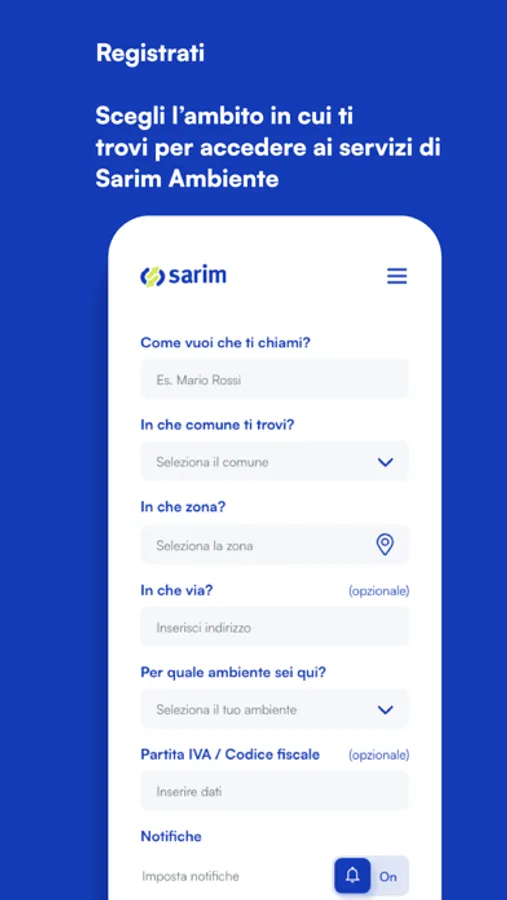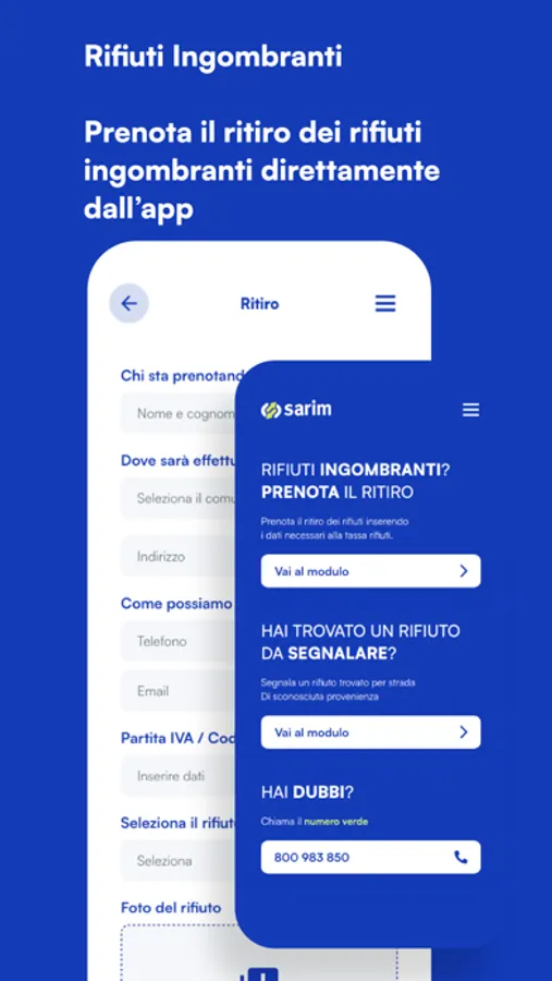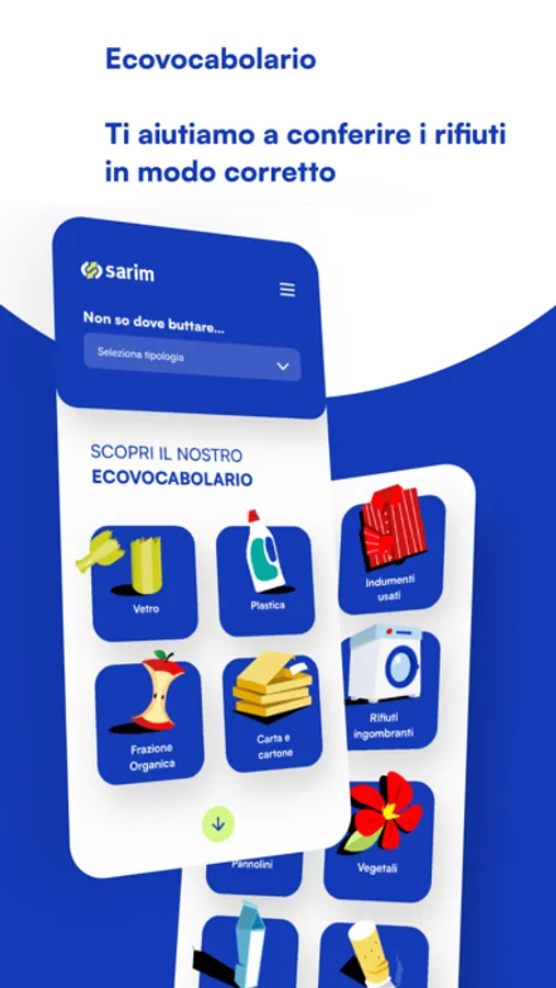 L’applicazione aiuta tutti i cittadini, che risiedono nei comuni serviti da Sarim, a rispettare i calendari e gli orari di conferimento rifiuti, istruisce tutti i cittadini sulla corretta raccolta differenziata dei rifiuti grazie all'ecovocabolario, da la possibilità di prenotare il ritiro di rifiuti ingombranti, e consente di essere sempre aggiornati su tutte le novità della raccolta differenziata del comune di appartenenza.