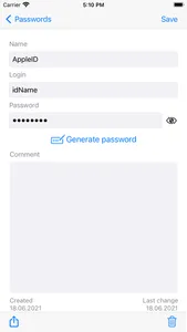 - create new passwords, notes, photos and copies of documents, edit them