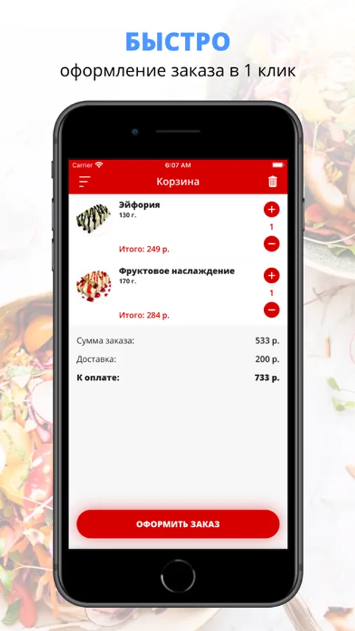 Наша собственная курьерская служба с личным автопарком доставит еду быстро и качественно.
