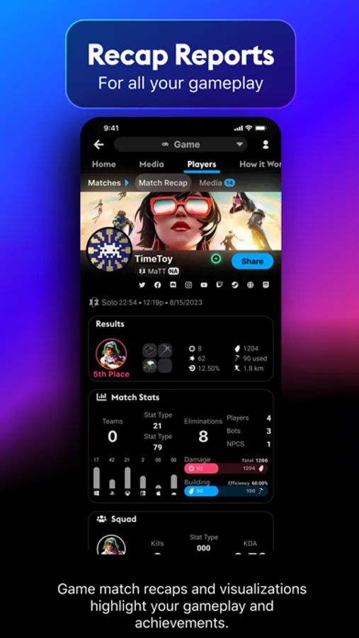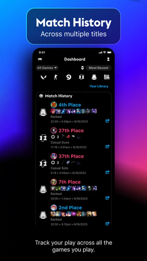 This companion app, complementing the Omnislash Desktop App that provides media support, offers full stats support for Riot games such as League of Legends, Legends of Runeterra, Teamfight Tactics, Valorant, alongside other popular titles like CS:GO, Fortnite, Chess, Hearthstone, Marvel Snap & Fall Guys. Additionally, it provides media support for over 100+ leading gaming titles.