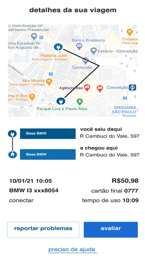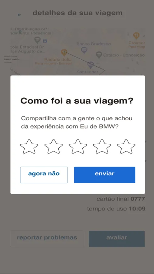 Uma experiência inovadora, através do BMW, tudo pelo app: localizar a base, abrir o carro sem as chaves, informações das suas jornadas, visualizar sua economia em emissão de CO2 e, por fim, avaliar sua experiência.