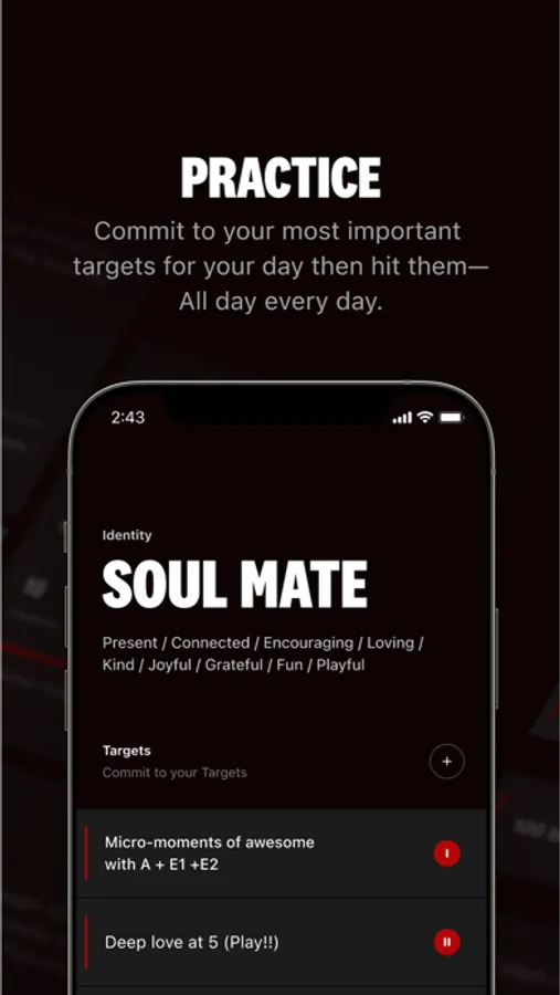 I waited a few weeks to review. Now that I’ve been using it daily on a consistent basis, I can attest, there is immense power in daily review and commitment to your “Big 3x2” heroic identity, virtues, and action targets, in the areas of Energy, Work and Love. Then being able to recheck the app during the day as you hit your targets. POWERFUL!!!