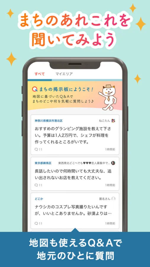 まちのあれこれを気軽に地元の人に聞いてみましょう。近所の質問があったら知っていることを回答してみよう!