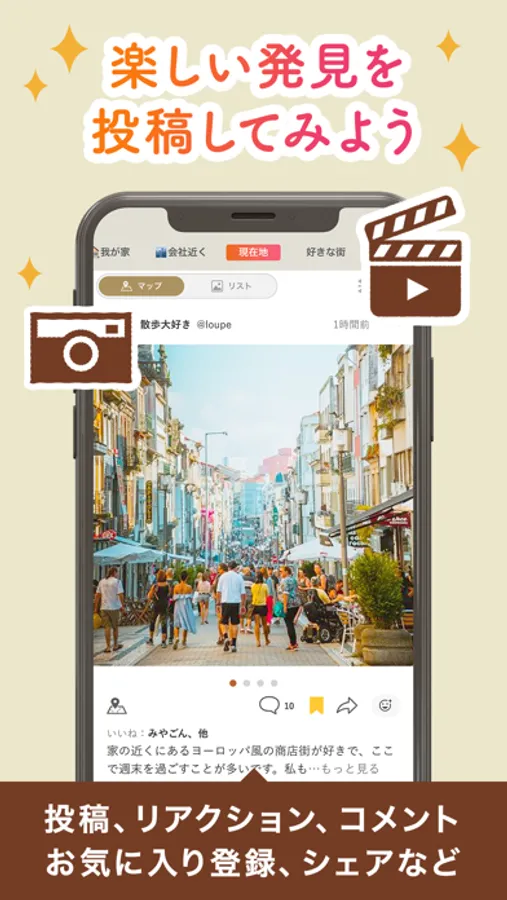 おすすめの場所や、面白い発見があったら、どんどん投稿して、みんなにシェアしましょう。