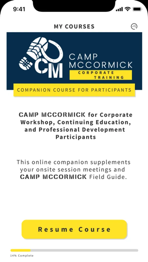 Welcome to the Camp McCormick mobile app, the premier equine-assisted learning community for corporations, continuing education, and those impacted by trauma. Through the app, you'll get access to online courses covering a wide variety of topics including emotional intelligence, empowerment, intentional change, resilient leadership, resonance, recovery and more!