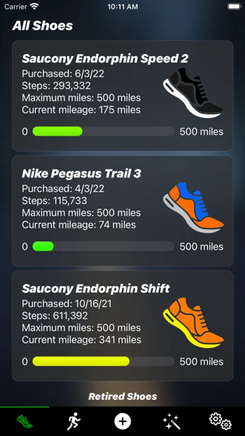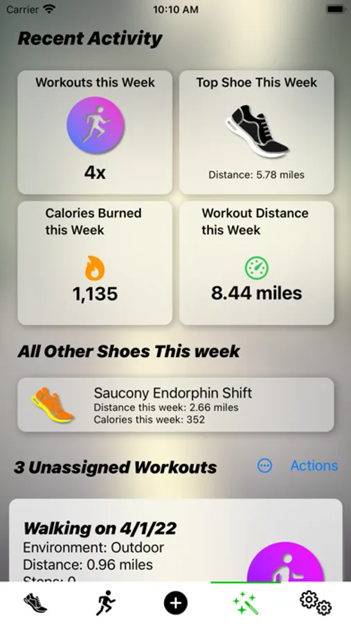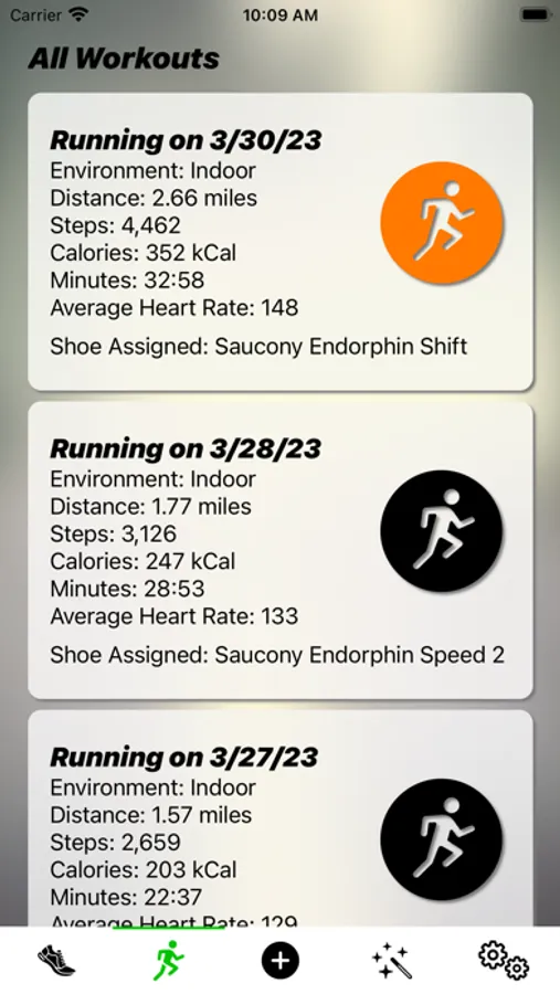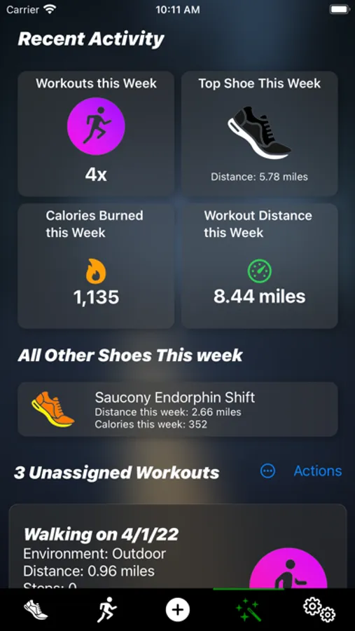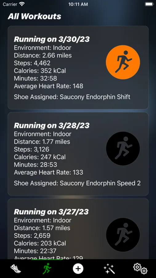 By default, this app will allow you to manually log workouts. And if you give it permission, Sneaker Tracker will watch for new workouts you log into the Health app. Whenever you log a workout, you should assign it to the shoe you used. From there the app will keep record of your milage and send you notifications when you reach your replacement range.